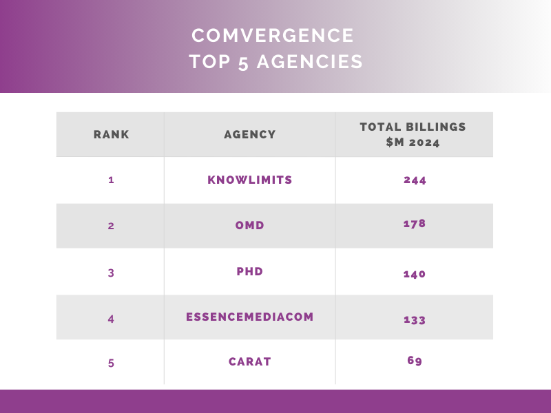 COMvergence patří mezi nezávislé mezinárodní výzkumné firmy v oblasti marketingové a mediální komunikace. Pravidelně publikuje analytické benchmarkingové studie zaměřené na strategický vývoj v tomto segmentu. Prostřednictvím komplexních reportů, interaktivních nástrojů a datové analytiky pomáhá COMvergence zadavatelům reklamy, mediálním agenturám a poradenským firmám získat jasnější přehled o konkurenčním prostředí, výkonnosti agentur a klíčových trendech v oboru.