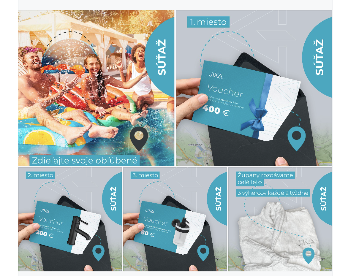 Soutěž běžela na Instagramu a Facebooku po dobu letních prázdnin a postupně se z ní stal přirozený obsahový formát, který rozšířil standardní aktivitu na profilech. Výsledkem byla pestrá galerie míst přímo od sledujících. Vybrané tipy jsme sdíleli každých 14 dní formou stories, ale i ve feedu. Kromě aktivity na sociálních sítích jsme také připravili a spustili interaktivní mapu, kam jsme jednotlivé tipy zaznamenávali a kdokoliv se tak mohl inspirovat a místa navštívit. Mapy, které jsme pojmenovali „JIKA letní průvodce míst u vody“, získaly 852 zobrazení u české verze a 943 zobrazení u slovenské.
